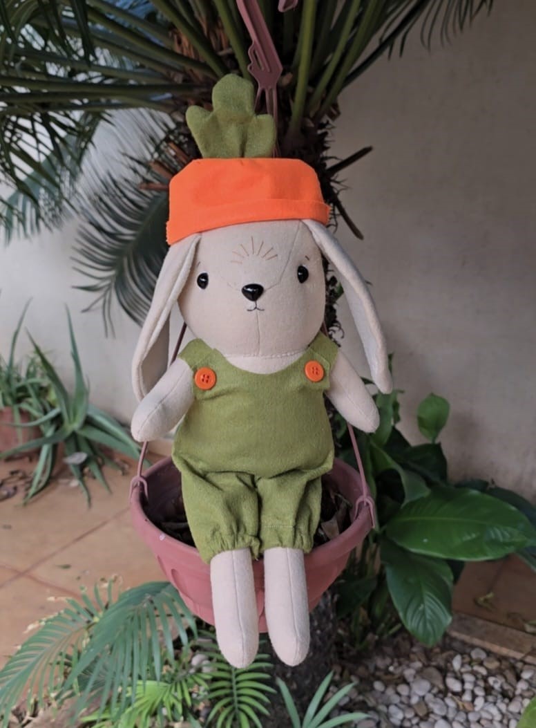 Casal de Coelhos da Páscoa em feltro, com aproximadamente 37cm de altura; enchimento em fibra siliconada anti-alérgica.